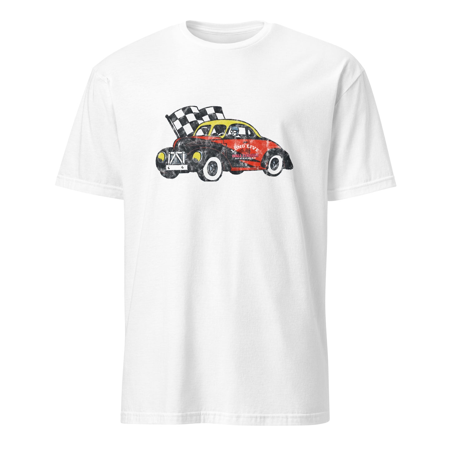 You've now found the staple t-shirt of your wardrobe. This one throws it back to Wall Stadium Speedway, the legendary high-banked bullring that's been hammering out Saturday night races since 1950. From the roar of Modifieds to the chaos of the Turkey Derby, if you've ever smelled rubber on Route 34, you know.